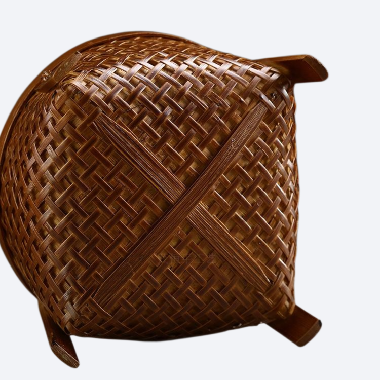 Bamboo woven fruit basket with large round mouth storage basket