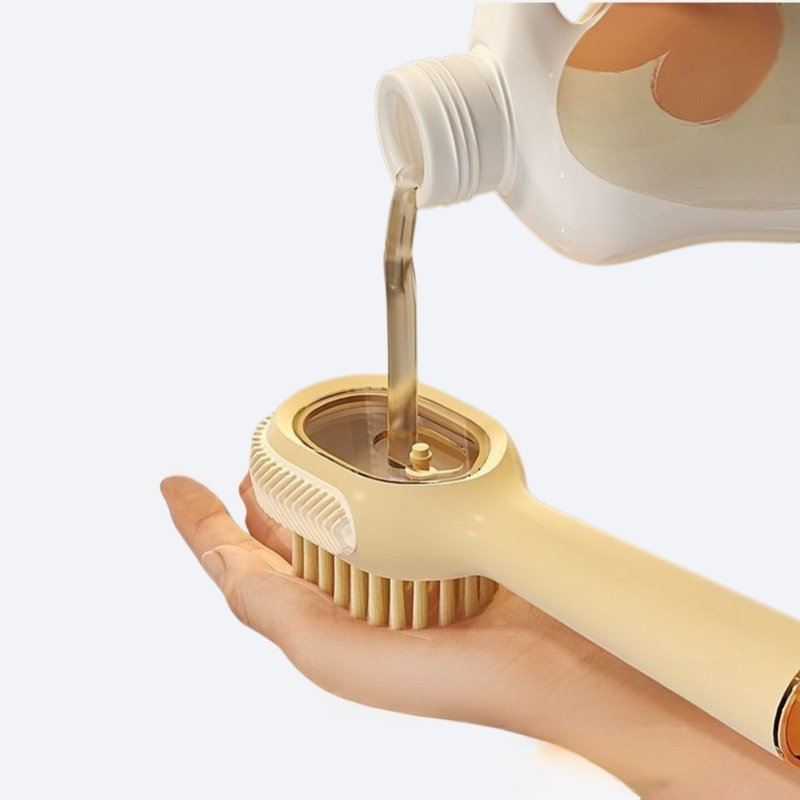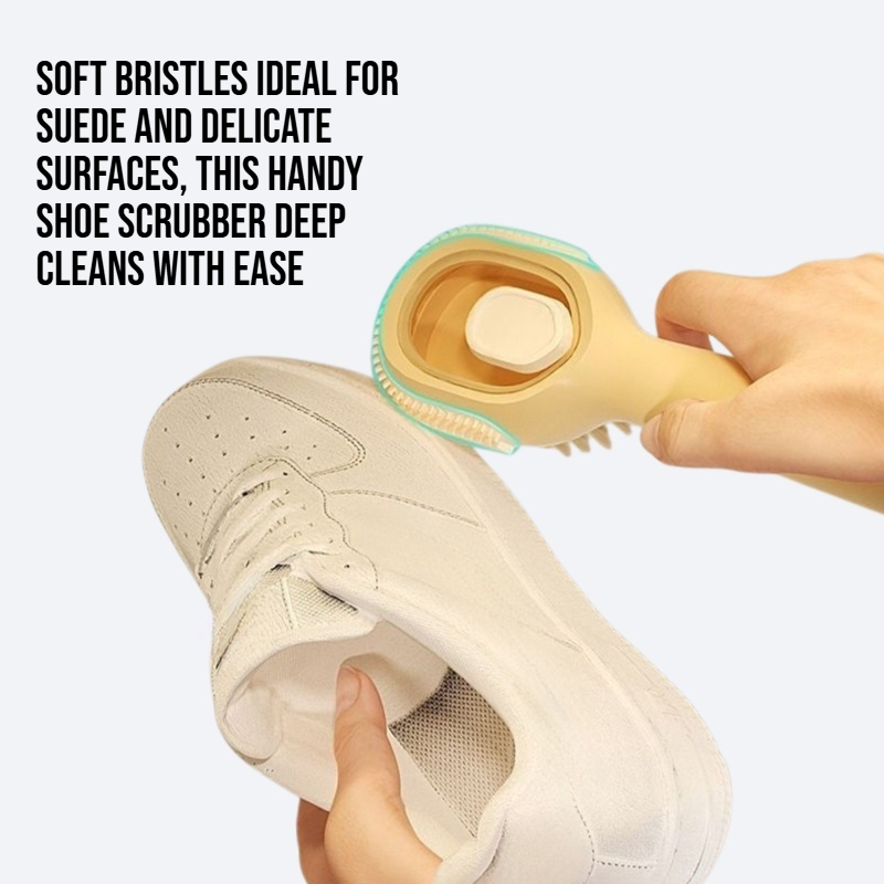 Efficiently cleans shoes with built-in liquid dispenser, easy-to-use design, suitable for various materials, portable and durable, ideal for daily shoe care.